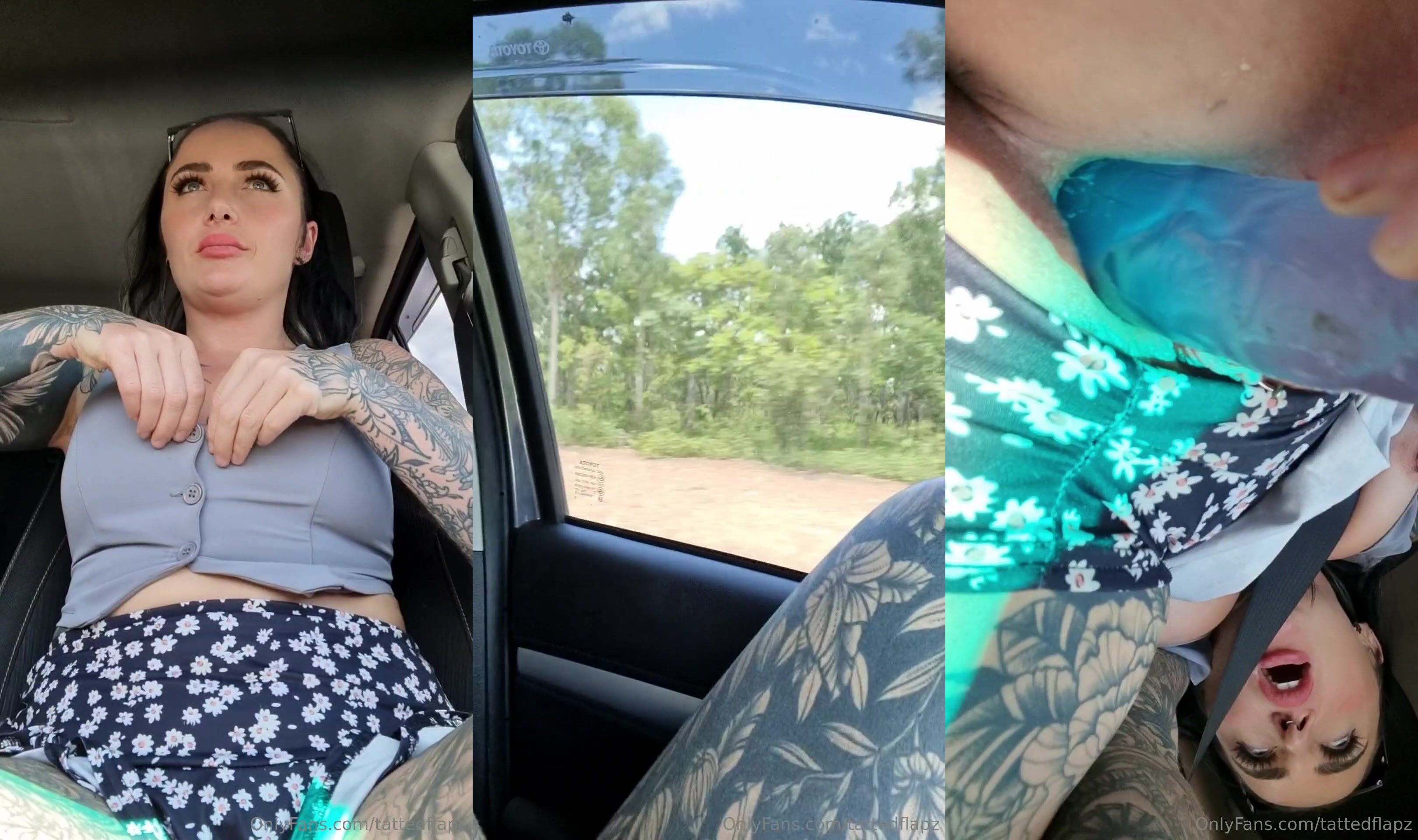 tattedflapz dp dildo in moving car