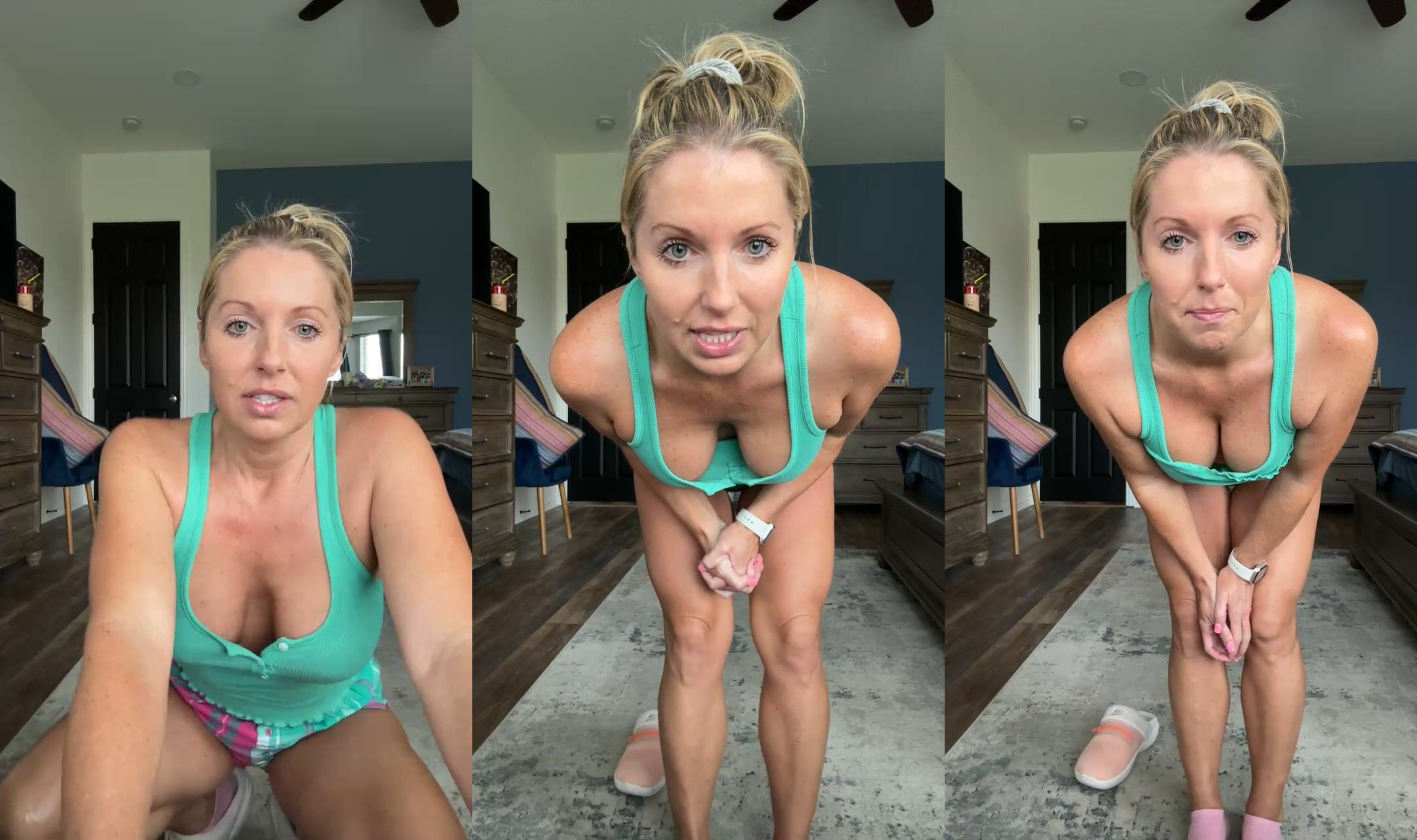 Kelly Jane Caron-Gerstine in green lacy lingerie 2